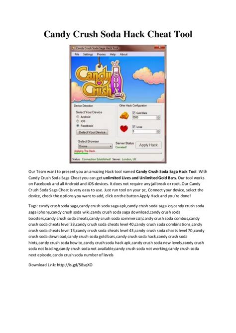 Candy Crush Saga Hack Cheats Generate unlimited Gold Bars. Now you can generate unlimited amount of premium currencies in the game for free of cost.Our team of hackers have been working on the perfect hack for this game and have finally come up with the best hack in the market.
